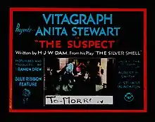 The Suspect is a 1916 American silent drama film directed by S. Rankin Drew, starring Anita Stewart and produced by the Vitagraph Studios.[1] The film marked Frank Morgan’s film debut.
