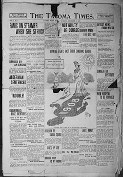 - ↑ About the Tacoma Times, at Chronicling America, published no later than June 23, 2011 (date of earliest version found on Internet Archive); retrieved November 26, 2014