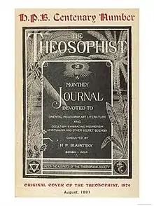 The Theosophist is the monthly journal of the international Theosophical Society based in Adyar, India. It was founded in India in 1879 by Helena Blavatsky,[1] who was also its editor. The journal is still being published till date. For the year 1930, the journal was published in Hollywood, California by Annie Besant and Marie Russak Hotchener, but it returned to Adyar in 1931.[1] The journal features articles about philosophy, art, literature and occultism.