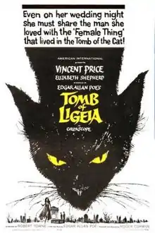 The Tomb of Ligeia is a 1964 British horror film directed by Roger Corman. Starring Vincent Price and Elizabeth Shepherd, it tells of a man haunted by the spirit of his dead wife and her effect on his second marriage. The screenplay by Robert Towne was based upon the short story "Ligeia" by American author Edgar Allan Poe and was the last in his series of films loosely based on the works of Poe. Tomb of Ligeia was filmed at Castle Acre Priory and other locations with a mostly English cast.