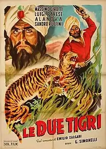 The Two Tigers (Italian: Le due tigri) is a 1941 Italian historical adventure film directed by Giorgio Simonelli and starring Massimo Girotti, Luigi Pavese and Sandro Ruffini.[1] It is based on the 1904 novel The Two Tigers by Emilio Salgari, featuring the character of Sandokan. It was made back-to-back with another Sandokan adventure Pirates of Malaya.