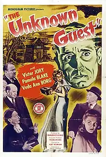 The Unknown Guest is a 1943 American mystery film released by King Brothers Productions. It was written by Philip Yordan, directed by Kurt Neumann and stars Victor Jory, Pamela Blake and Veda Ann Borg.