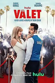 The Valet is a 2022 American romantic comedy film directed by Richard Wong and written by Bob Fisher and Rob Greenberg. It is a remake of the French film The Valet (2006) by Francis Veber. It stars Eugenio Derbez and Samara Weaving, with Max Greenfield, Betsy Brandt, Marisol Nichols, Amaury Nolasco, Carmen Salinas, Noemi Gonzalez, Armando Hernández, Carlos Santos, Ravi Patel, and John Pirruccello in supporting roles. The film is dedicated to Salinas, who died in 2021. The plot follows a parking valet (Derbez) who is hired to date an actress (Weaving) trying to cover up an affair. The film was released on Hulu on May 20, 2022. It received generally positive reviews from critics.