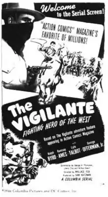 The Vigilante, marketed as The Vigilante: Fighting Hero of the West, is a 1947 American Western film serial directed by Wallace Fox. The 33rd serial released by Columbia Pictures, it was based on the comic book cowboy Vigilante, who first appeared in Action Comics, published by DC Comics. It stars Ralph Byrd, well known for his central role in the Dick Tracy serials. It was his last serial appearance.