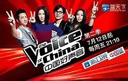 The second season of The Voice of China (Chinese: 中国好声音; pinyin: Zhōngguó Hǎo Shēngyīn) is a Chinese reality talent show that premiered on 12 July 2013, on the Zhejiang Television sponsored by Jiaduobao. Harlem Yu and Na Ying returned as coaches for this season. Yang Kun and Liu Huan both left the show and were replaced by new coaches A-mei and Wang Feng.[1]