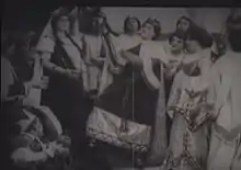 In a departure from the play, the film shows Hermoine's revival and departure to Paulina's house to dwell in seclusion. The infant princess is raised up by a shepherd of Bohemia. After a time lapse of 15 years, Polixenes confronts his son over his wanderings. He refuses to answer and the king follows him in secret. The prince, disguised as a shepherd, woos the young shepherdess and announces his intention to marry her. The king arrives and forbids it, but a faithful courtier advises them to seek protection of the king of Sicilia. Leontes has long mourned and come to regret his past actions. There, the identity that the shepherdess as his daughter is revealed and the marriage is approved. The royal party is invited to Paulina's house to view a statue of the late queen Hermoine. At the party, Hermoine disguised as a statue, extend her hand and surprises the grieving Leontes, who then rejoices.[1]