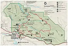 Both main units of the park have scenic drives, approximately 100 miles (160 km) of foot and horse trails, wildlife viewing, and back country hiking and camping. The park received 850,000 recreational visitors in 2021.[2]