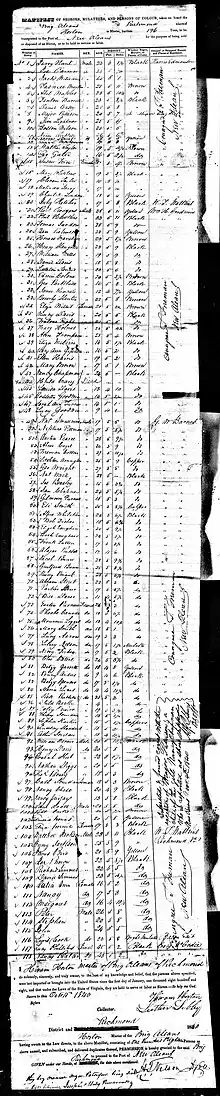 - ↑ "Runaway slaves". Baton-Rouge Gazette. 1840-12-05. p. 2. Retrieved 2023-09-18.