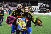 Sjögran (right) with Lotta Schelin on the occasion of Sjögran's 200th cap