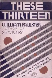 These 13 is a 1931 collection of short stories written by William Faulkner, and dedicated to his first daughter, Alabama, who died nine days after her birth on January 11, 1931, and to his wife Estelle. No longer in print, These 13 is now a collector's item.