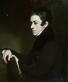 Brigstocke was born at 61, King Street, Carmarthen, on 17 April 1809, the third son of David and Mary Brigstocke.[1] He was educated at Queen Elizabeth's Grammar School in Carmarthen. At the age of sixteen he was sent by his parents to study in the studio of Henry Sass in Charlotte Street, London. Eight months later he became a student at the Royal Academy Schools,[2] first under Henry Perronet Briggs, and then under John Prescott Knight.[3] In 1833 he left Britain to study in Paris, Florence, Rome, and Naples, spending eight years in Italy. During this period he made various copies of the old masters, including one of Raphael's Transfiguration which was bought as an altarpiece for Christ Church, Albany Street, London, on the recommendation of the painter William Collins.[3] During his time in Rome he associated with two other Welsh artists residents there, John Gibson and Penry Williams, as well as Englishmen such as E.M. Ward and Joseph Severn. Brigstocke, a Welsh-speaker, is said to have taught the noted linguist Cardinal Mezzofanti the language.[2]