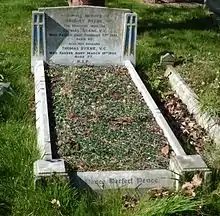 He later served in the Second Boer War.[3] He died at Canterbury, Kent, on 15 March 1944, and is buried at the local Canterbury City Cemetery. At the time of his death he was one of only 2 surviving members of the charge of the 21st Lancers at Omdurman where he won the VC. His funeral was attended by Winston Churchill who was the last surviving member of the regiment's charge. [4]