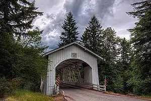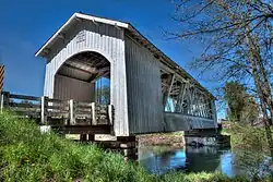 - 1 2 3 4 5 Cockrell, Bill (2008). Images of America: Oregon's Covered Bridges. Charleston, South Carolina: Arcadia Publishing. pp. 112–16. ISBN 978-0-7385-5818-9.