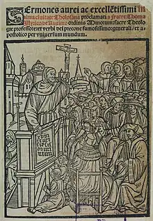 Sermones de Christo et Christipara, also called Sermones aurei, is a collection of Thomas's sermons published in two volumes at Toulouse in 1521.[4][5][7] It contains 25 sermons on Jesus and 25 on Mary, preached in Toulouse and transcribed by Masseo Bruna di Frossasco.[5]