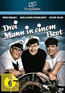 Three Men in a Boat (German: Drei Mann in einem Boot) is a 1961 Austrian-West German comedy film directed by Helmut Weiss and starring Walter Giller, Heinz Erhardt, Hans-Joachim Kulenkampff and Susanne Cramer.[1] The film is based on the 1889 British novel Three Men in a Boat by Jerome K. Jerome.[2] It was shot at the Rosenhügel Studios in Vienna and on location in Amsterdam and along the River Rhine through the Rhineland region and Baden-Württemberg of Germany and Switzerland. The film's sets were designed by the veteran art director Willi Herrmann.