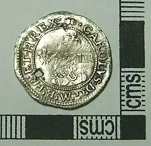 The threepence denomination fell out of use again during the reign of King James I, while during King Charles I's reign (1625–49) it was not produced at the London Tower mint, but was produced (sometimes in some quantity) at various provincial mints. The denomination is identified by the numeral III appearing behind the king's head.
