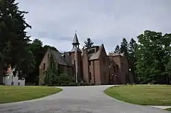 Tibbits House, also known as Tibbits Hall, is a historic home located at Hoosick in Rensselaer County, New York. The house was built about 1860 and 1+12-story, rectangular Gothic Revival–style building. It is constructed of cut ashlar sandstone blocks and has steeply pitched gable roofs covered with fishscale slate. It features projecting porches, bay windows, changes of rooflines, dormers, chimneys, and two towers. The existing house on the property was originally owned by U.S. Congressman George Tibbits (1763–1849); his son George Mortimer Tibbits (1796–1878) built the Tibbits House. At the time the property was bought by the Tibbits it was the location of a wooden house built before the Revolution by a Loyalist named Pfister. The Tibbits estate was a stop on the Underground Railroad. The building was acquired by Hoosac School in 1952 and is used as a dormitory, classrooms, and for administrative offices.[2]