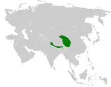 The Tibetan lark (Melanocorypha maxima) is a species of lark in the family Alaudidae found on the Tibetan plateau from north-western India to central China.[3] Alternate names for this species include the Asiatic lark, long-billed calandra lark and long-billed lark.[4]