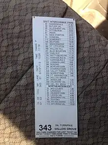 A toll ticket formerly used on the Pennsylvania Turnpike