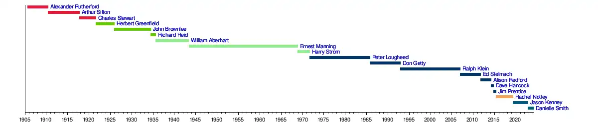 | November 9, 1905 | 1st Alberta general election occurs, the Alberta Liberal Party defeats the Alberta Conservative Party led by R.B. Bennett. Bennett will become the 11th Prime Minister of Canada. | ||