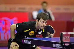 Timo Boll (German pronunciation: [ˈtiːmo ˈbɔl], audio; born 8 March 1981) is a German professional table tennis player, who currently plays for Borussia Düsseldorf. He is ranked second in the German Table Tennis National League,[1] and thirty-fifth in the ITTF world rankings as of April 2023.[5] Boll ranks among the best German table tennis players of all time, having ranked world No. 1 in 2003, 2011 and in March 2018.[6]