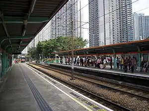 Tin Yiu (Chinese: 天耀) is an MTR Light Rail stop. It is located at ground level at Tin Shui Road near Tin Yiu Estate in Tin Shui Wai, Yuen Long District. It began service on 10 January 1993 and belongs to Zone 4. It serves Tin Yiu Estate and Tin Shing Court.[1]