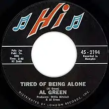 "Tired of Being Alone" is a soul song written by American singer Al Green. It reached number 11 on the Billboard Hot 100 and number seven on the Soul Singles Chart in 1971. Billboard ranked it as the number-12 song for 1971.