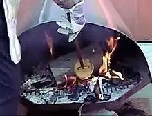 Today, toasting forks are often used around campfires,[35] constructed out of simple materials, such as Y-shaped tree branches[36] or wire coathangers.[37][38][39] They are also sold as an accessory for woodburning stoves,[40] and as a novelty item.[41]