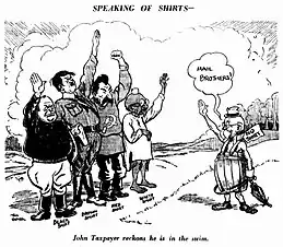- ↑ Bavin's Logic, The Sun (Sydney), 6 March 1828, page 13; How to Keep the Lads on Board, 7 March 1828, page 13; The Scrub-cutter, 8 March 1928, page 12; The Commissioner for Taxation..., 9 March 1928, page 10; To-day's Complaint, 10 March 1928, page 8.