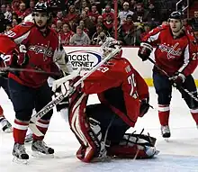 Vokoun signed a one-year contract with the Washington Capitals on 2 July 2011 worth $1.5 million.[9] Vokoun had a rough 2011–12 NHL season with the Capitals, as it was plagued by injury and inconsistent performance.