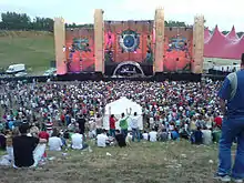The mainstage is the festival's centrepiece and has grown and evolved from its debut with the festival itself in 2005. Since then, it has become the largest and most elaborate stage of any festival across the globe. The mainstage features all the headline artists, and continues with sets until 1 a.m. Its design changes each year and, since 2009, has been based on the festival theme for the year (for images of some of these designs, see the "History" section). In 2022, the largest mainstage so far, 270 m (890 ft) wide end 53 m (174 ft) high, was built.[65]