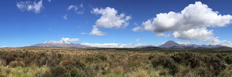 There are a number of Māori religious sites within the park,[3] and many of the park's summits, including Ngauruhoe and Ruapehu, are tapu, or sacred.[4] The park includes many towns around its boundary including Ohakune, Waiouru, Horopito, Pokaka, Erua, National Park Village, Whakapapa skifield and Tūrangi.