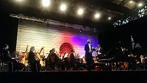 ![]() Tonkünstler Orchestra at Smetanova Litomyšl 2018 festival, with pianist Ivo Kahánek (front) | |
