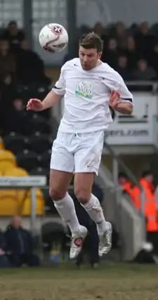 James moved to Weymouth[7] where he was to spend just one season at the promotion-chasing outfit, captaining the club and scoring three penalties.[8] When financial troubles hit the Terras, James moved to Burton Albion for the current season.[9] A knee injury sustained at the start of the season limited his appearances but he returned to first team action against Altrincham.[10] He was part of the 2008–09 Conference National winning side and signed a new contract with Burton in May 2009. James rejoined Hereford United on a month's loan in October 2010.[11]