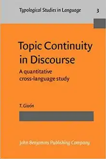 - Givón, Talmy. Topic Continuity in Discourse: A Quantitative Cross Language Study. Typological Studies in Language 3. Amsterdam: John Benjamins, 1983.