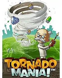 Tornado Mania! is a mobile game developed by Digital Chocolate. Players assume the role of a scientist who has decided to create his own Utopia by collecting buildings with the tornadoes he creates.