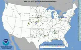 - ↑ "Severe Weather Database Files (1950-2021)". Storm Prediction Center. National Oceanic and Atmospheric Administration. July 11, 2022. Retrieved November 12, 2022.