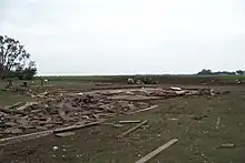 The severe weather shifted north as a new low pressure system tracked across the northern Plains states on May 22. Isolated tornadoes were reported across portions of central South Dakota that afternoon.[61] The most intense supercell produced a long-lived wedge tornado in and around Bowdle, South Dakota, where numerous houses and farm buildings were destroyed and cars were thrown into the air. It was rated as an EF4, but mostly remained in rural the countryside and no injuries were reported.[62]