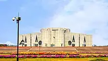 , Jatiyo Sangsad Bhaban (National Parliament) was created by American architect Louis Kahn. Construction was started in 1961 and completed on 28 January 1982 with the total cost was about 32 million dollars. It is situated at Shre-e-Bangla Nagar in Dhaka. Jatiyo Sangsad Bhaban was used for the first time on 15 February 1982 as the venue for the eighth (last) session of the second parliament of Bangladesh. Since then, it has been used for the Bangladesh National Assembly.