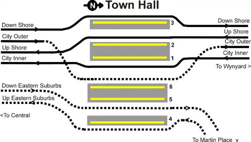 - ↑ Town Hall Station Archived 15 April 2012 at the Wayback Machine NSWrail.net