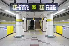 The station has an underground island platform serving two tracks. The platforms are equipped with waist-height platform edge doors.