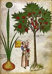 The Medieval medicine of Western Europe was much influenced by the many groups who contributed to the make-up of society. The contributions of Byzantine, Arabic and Mozarabic physicians were introduced into the Greek foundational texts of medicine, as was also the knowledge of people from further afield across the borders of the western world. Among the many results of this multiplicity of ethnic groups and cultures, medicinal plants had many different names coming from the several groups who were using them to prepare remedies. Such diversity was a source of confusions. To avoid the danger possibly generated by confusion between plants, apothecaries and physicians compiled dictionaries of plant names and commissioned albums with representations of the plants and other materia medica (animal and mineral) they used in their daily medical practice.[1]