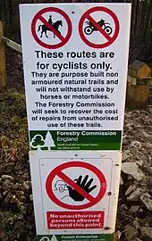 In the US off-road vehicle use on public land has been criticized by some members of the government[7] and environmental organizations including the Sierra Club and The Wilderness Society.[8][9] They have noted several consequences of illegal ORV use such as pollution, trail damage, erosion, land degradation, possible species extinction,[10] and habitat destruction[11][12] which can leave hiking trails impassable.[13] ORV proponents argue that legal use taking place under planned access along with the multiple environment and trail conservation efforts by ORV groups will mitigate these issues. Groups such as the Blueribbon Coalition advocate Treadlightly, which is the responsible use of public lands used for off-road activities.