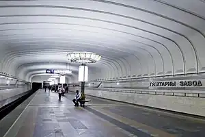 Traktarny zavod (Belarusian: Трактарны завод; Russian: Тракторный завод; lit: "Tractor Factory") is a Minsk Metro station. It opened on 31 December 1990.