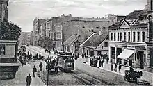 Trams in Łódź made their first appearance on 23 December 1898.[4] Łódź was the first city to have electric trams in what was then Congress Poland. Initially, there were two fairly short tram lines that both served the city centre area; by February 1899 their number was doubled. In 1901, the first suburban tram lines started – the Pabianice and Zgierz lines.[5] Both of these initiatives were the result of the activities of private companies in which German manufacturers dominated.