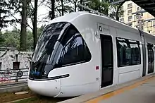 Trams in Wuhan may refer to any one of the tram systems currently operational in the city of Wuhan, Hubei, China. The first tram started revenue service in Wuhan is the Auto-city T1 Line, which began on July 28, 2017.[1] Subsequently, Optics Valley tram started revenue service from April 1, 2018.[2]