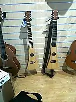 - A very small guitar with a body shaped like an elongated triangle, similar in shape to certain types of psaltery, and designed to be very portable and inexpensive while still being constructed of quality woods. The guitar is famous for having originally been designed by Robert McAnally before Martin took over the design, and was the first guitar to be taken into space. The guitar has also been taken up Mount Everest