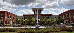 Treasure Coast High School is made up of four buildings and a central courtyard. The campus is designed to be very open and large to accommodate its students. The campus has trees and other plants. Three of the four buildings are two-story. The only building that does not have a second story is building three, which contains the auditorium, gymnasium, and several elective classes.