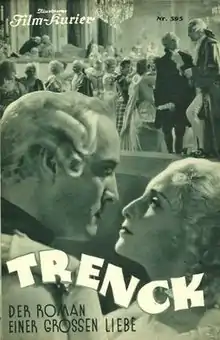 Trenck (German: Trenck – Der Roman einer großen Liebe) is a 1932 German historical film directed by Ernst Neubach and Heinz Paul starring Hans Stüwe, Dorothea Wieck, and Olga Tschechowa. The film was based on a novel by Bruno Frank.[1] It was shot at the Johannisthal Studios with sets designed by the art director Erich Czerwonski. It depicts the life of the Eighteenth century adventurer Friedrich von der Trenck.