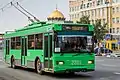 The trolleybus fleet is represented by such "classic'" trolleybuses as Soviet ZiU-9, and ZiU-10, Russian VMZ-184, VMZ-201, VMZ-263, VMZ-375, BTZ-5276-01, Trolza-5265.00, Trolza-5275.05, and Trolza-5275.06, Belarusian AKSM-101A, and AKSM-101M. In 2011-2012, trolleybuses ST-6217M with battery packs, manufactured by Novosibirsk factory Liotech, were tested.[3][4] Experiment had ended when Liotech was declared insolvent.[5] In 2022, municipal authorities decided to repeat the experiment with new trolleybuses with battery packs - UTTZ-6241.01.[6]